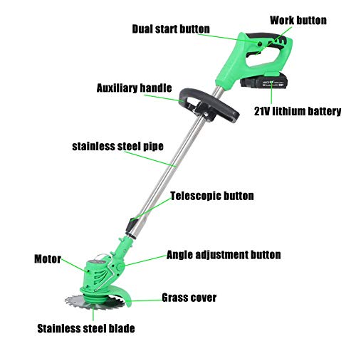 Cambia il design della maniglia, non facile da far scorrere, sentirsi a proprio agio, stabile e durevole. Asta telescopica regolabile da 30 cm (lunghezza totale regolabile dei tagliabordi elettrici: 90 ~ 120 cm), telescopica gratuita per migliorare l’efficienza del lavoro in modo più efficiente.