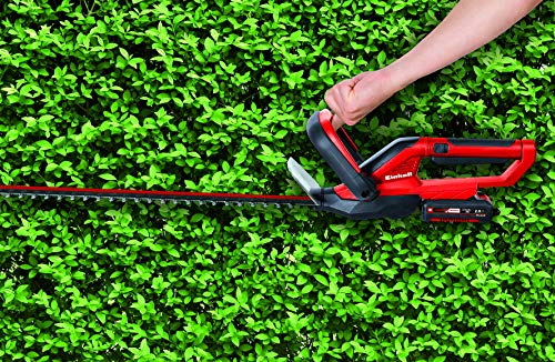 Il dispositivo viene fornito senza batteria o caricatore: questi ultimi sono venduti separatamente, soprattutto nel starter kit, molto pratico. Una batteria Power X-Change da 18V è necessaria all’utilizzo del tagliasiepi senza fili Einhell.