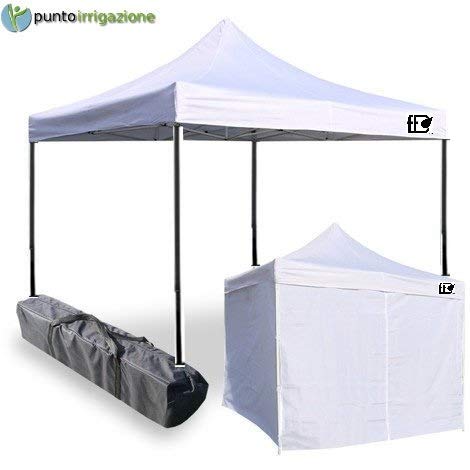 FT TENORE Gazebo RAPIDO RICHIUDIBILE 3X3 M Pieghevole A Fisarmonica Mercato TENDONE con COPERTURE Laterali (Bianco)