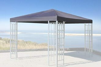 DATI TECNICI: Dimensione 3×3 Altezza 2,85 mt Pali Verticali 3,0 x 3,0 cm Telo in poliestere Plastificato 600 D 280 gr/mq Telo sul tetto in colore bianco ANTI ACQUA. Struttura in ferro e metallo verniciato Bianco.