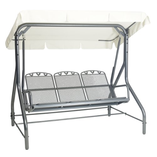 greemotion Dondolo altalena per esterni come balcone, terrazza o veranda – Panchina a dondolo con tre posti a sedere – Divano a dondolo con tettuccio parasole apribile, colore beige