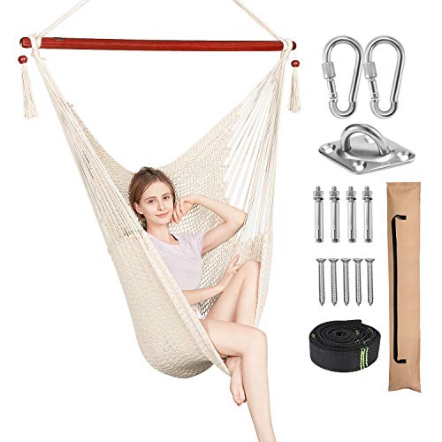 Portatile per uso interno ed esterno – Il design portatile e facile di usare della sedia per amaca ti aiuta a spostarlo ovunque. È leggero e compatto, ottimo per l’uso in casa, in soggiorno, in veranda, in giardino o sugli alberi o addirittura per portarlo durante escursioni come trekking, campeggio o caccia. La rete è rimovibile e lavabile.