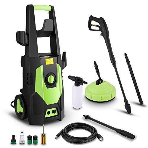 Hopekings Idropulitrice ad Alta Pressione Idropulitrice a Freddo(2000 W, 150 Bar, 450 l/h) con Spazzola Fissa,Tubo da 5 m,Verde