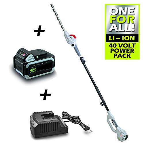 Particolarmente leggero grazie alle fibre di vetro e al manico in alluminio, incl. tracolla, batteria e caricabatterie inclusi nell’oggetto della fornitura, sistema con batteria ONE-FOR-ALL da 40V: un sistema con batteria adatto a tutti gli strumenti da giardino di marca IKRA con il simbolo 40V