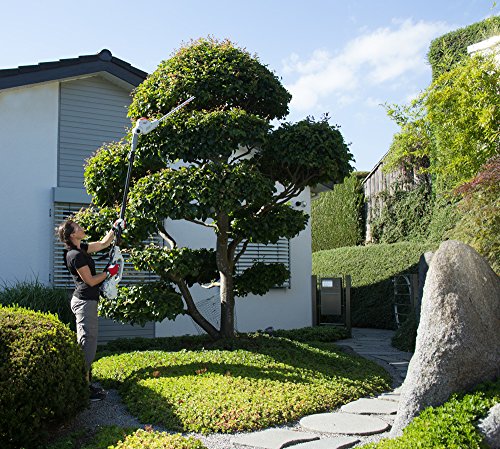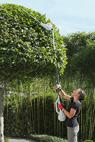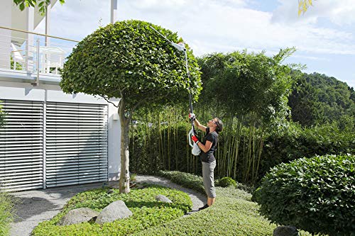 Impugnatura e asta telescopica con comodo sistema Softgrip (maniglia soffice), testa di taglio estraibile per conservazione salvaspazio