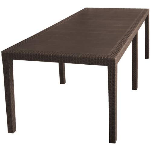 Ipae-Progarden Queen, Tavolo rettangolare allungabile effetto rattan, Marrone, 220 x 90 x 72 cm