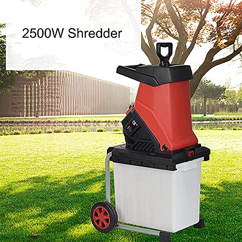 Il potente trituratore del giardino dotato di un potente motore di rame puro da 2500W.Il nostro trituratore di legno elettrico pu facilmente schiacciare rami e arbusti fino a 1,77 pollici di diametro.