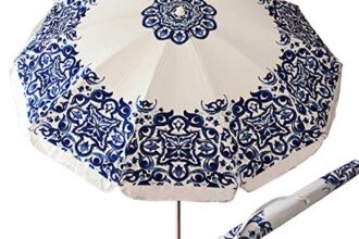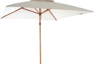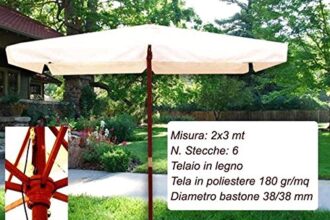 Parasole con inclinazione multi-posizioni, sistema di apertura retrattile con manovella, sistema di rotazione a 360° azionabile con pedale, base a croce (piastrelle non incluse)