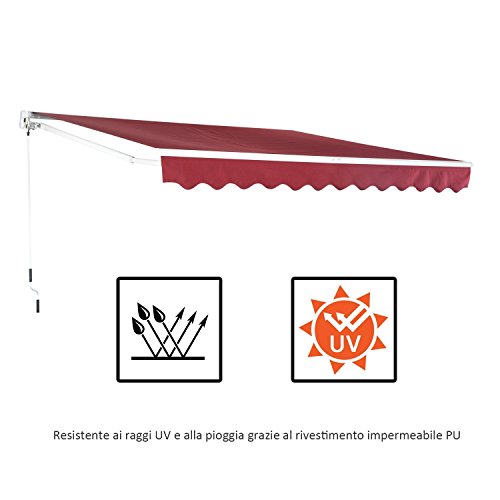 Outsunny Tenda Avvolgibile Impermeabile in Poliestere Rosso da Sole per Esterno Balcone Bordeaux 3×2,5m