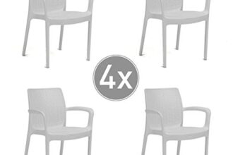 SET COMPLETO: include 4 sedie Bali con braccioliDESIGN ELEGANTE: Sedia impilabile con finitura rotonda in rattanADATTA per interni ed esterni, ideale per giardini, terrazzeMISURA: 58x55x83, sedie impilabili con seduta confortevole Prezzo: (alla data del – ...