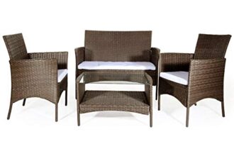 MINIMO PESO – ELEVATA PORTATA: Il resistente rivestimento in polyrattan e il solido telaio in alluminio rendono questo inossidabile set perfetto come mobilio outdoor.