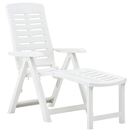 Tidyard Lettino Prendisole Pieghevole in Plastica Bianco, Lettini da Giardino, Sedie a Sdraio da Giardino, Lettino da Esterno 59 x 108 x 108 cm