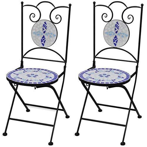 vidaXL Set 2 pz Sedia Bistro in Ferro da Giardino Esterno con Mosaico Blu/Bianco