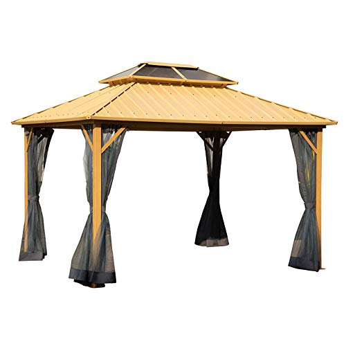 2-TIER VENTED TETTO: coupé 2 livelli gazebo fornisce una protezione perfetta, bloccare i raggi UV dannosi del sole pur permettendo alla luce solare trasparire. Siete liberi di rilassarsi e riposare sotto il fresco all’ombra copertura arborea. Ha un bel dipinto venature del legno che offre un luogo elegante per feste all’aperto e picnic in famiglia ..