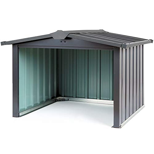 Resistente alle intemperie: l’acciaio zincato e le parti verniciate garantiscono una protezione ottimale dai raggi UV e dagli agenti atmosferici. Grazie al tettuccio scorrevole del garage per robot tosaerba, la neve e la pioggia possono scorrere facilmente. Lo strato sottile di zinco protegge la lamiera d’acciaio dalla corrosione e aumenta la durata del garage per robot tosaerba.